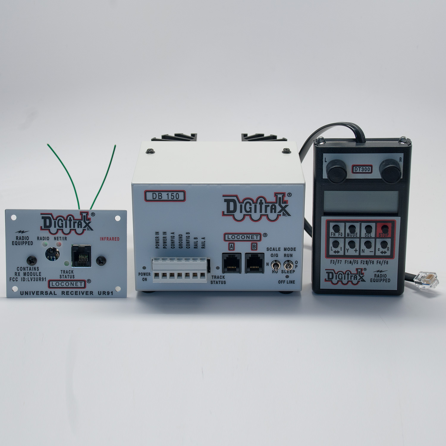 This product has been replaced by the Super Empire Builder Simplex Radio Equipped (SEBRE) and is no longer available. Click here to view the SEBRE.The Empire Builder II Radio Equipped starter set was introduced as an intermediate level starter system. The set included a DB150 Command Station/Booster, DT300R throttle, a Mobile Decoder, UR91 Radio Receiver and a LT1 LocoNet Tester. The set also included a premium decoder in N, HO, or G scales.