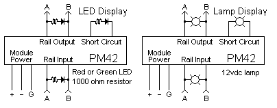 The following diagram provides the basic information for monitoring the inputs and the outputs with either a LED or a lamp.